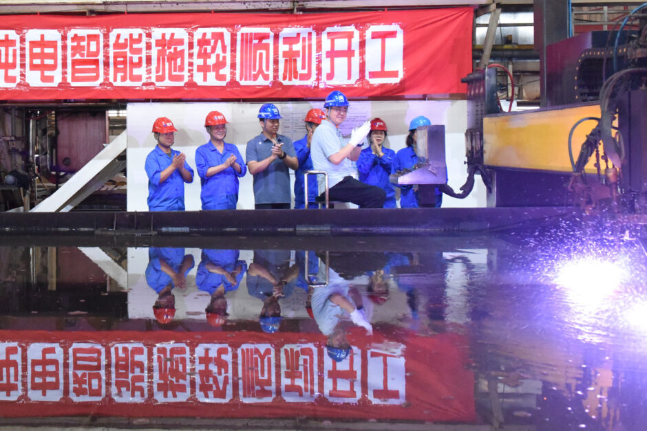On September 9, 2025, a steel cutting ceremony was held by Zhenjiang Shipyard at their facility in Jiangsu Province, China to mark the construction of an electric battery-powered tugboat, designed by Robert Allan Ltd. for Tianjin Port Towing Company. This vessel is the towing company’s first to feature electric battery propulsion.