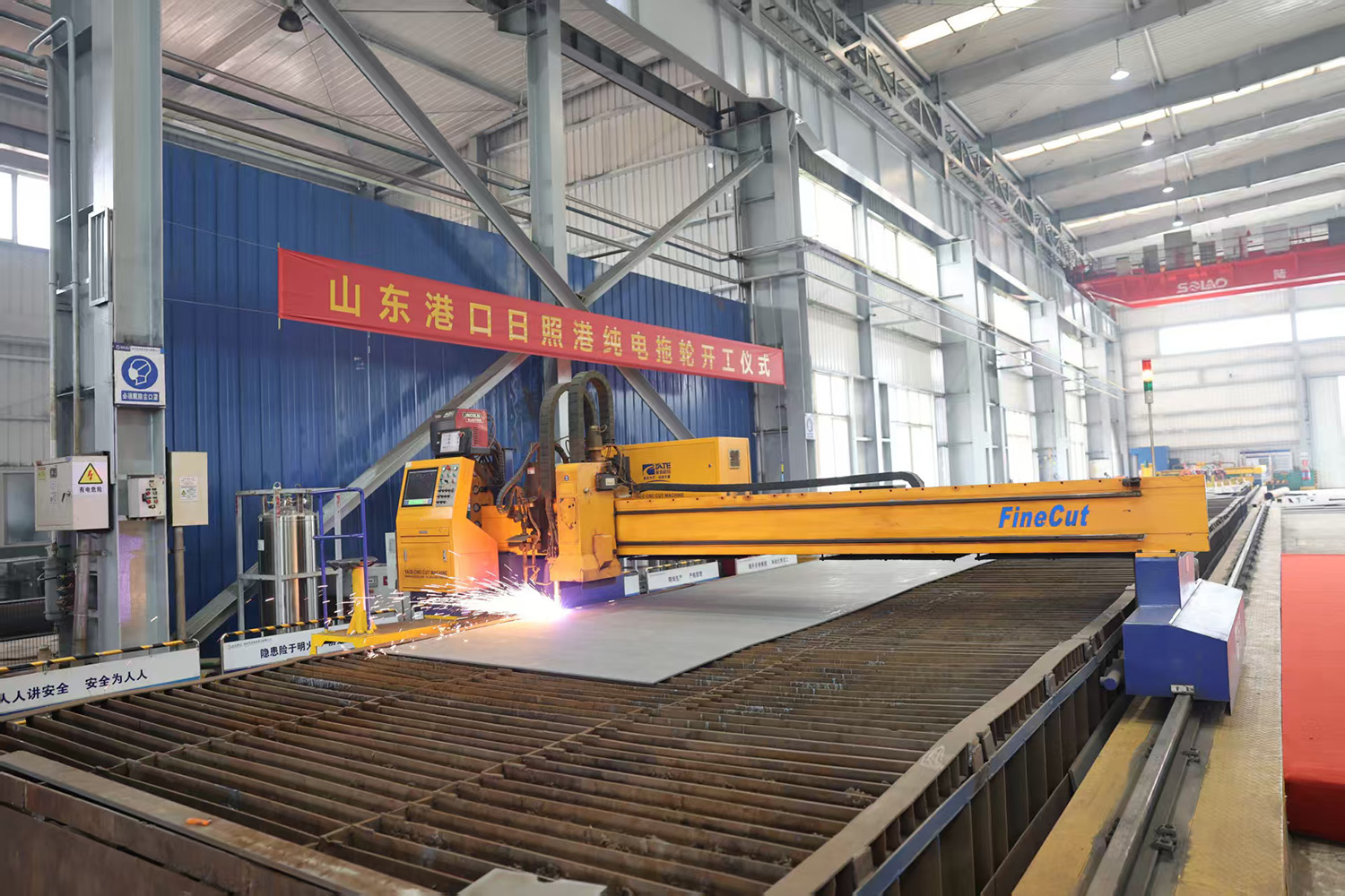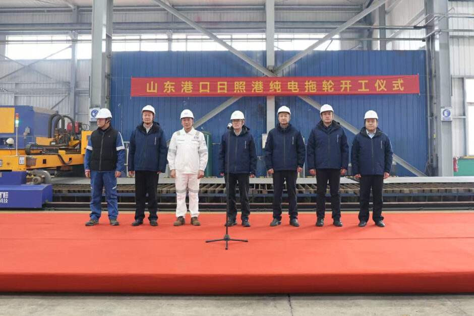 The steel cutting ceremony of the first fully electric tugboat for Rizhao Port, part of Shandong Port Group on December 9, 2025, marked an important milestone and made a major step forward in the port’s transition toward low-carbon and intelligent operations. The vessel is designed by Robert Allan Ltd. and is being built by the Shandong Sea-land equipment group.