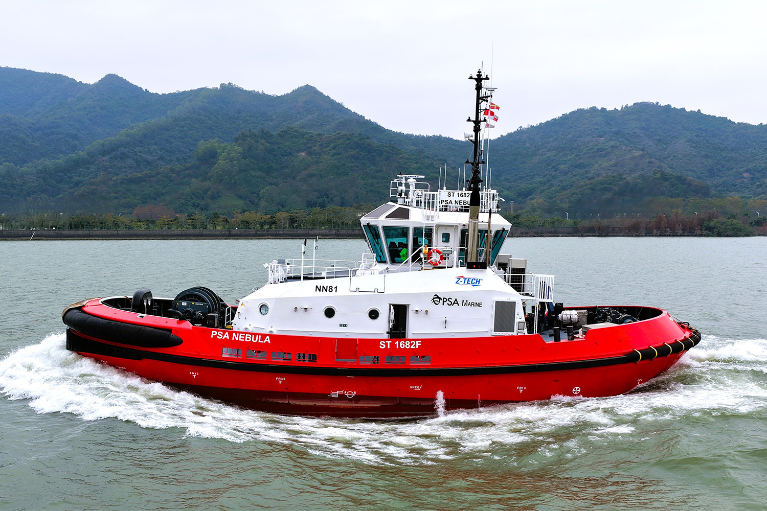 In 2024, Cheoy Lee Shipyards of Hong Kong delivered the first boat of Robert Allan Ltd.’s new Z-Tech 6000 design, the PSA Gemini, to PSA Marine of Singapore. Less than two years later the 16th and final boat of that contract, the PSA Nebula, has left the shipyard for its home in the Port of Singapore. The various boats of this series are now operating successfully in PSA Marine’s fleet, with seven in Singapore, six in Thailand, one in Peru and two in Panama. They add to the fleet of more than 100 of the award-winning Z-Tech designs already in service around the world with various tug operators in different ports.